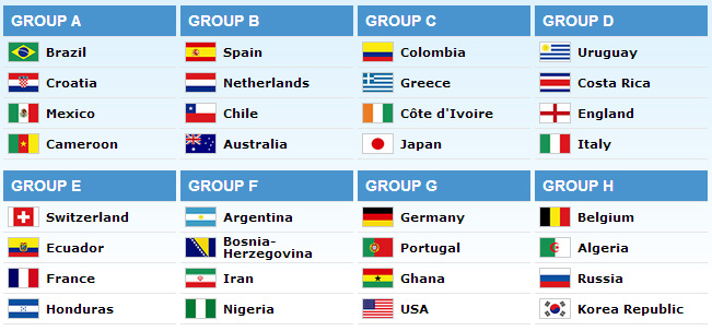 گروه بندی رقابت‌های جام جهانی به این شرح است: